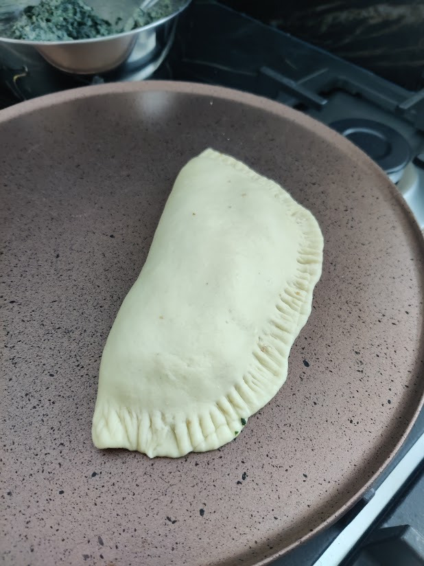 - Bagna i bordi, ripiega il crescione su se stesso, pressa bene i bordi facendo uscire l’aria e per sigillare premi anche con una forchetta.
