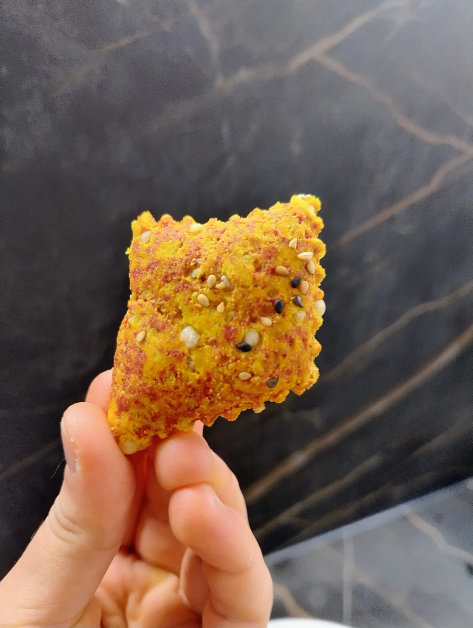 Hanno il gusto di una bella pizza margherita questi crackers, e sono come quelli che si trovano al supermercato… o quasi: sono infatti genuini, fatti velocemente, dal basso costo e senza conservanti/coloranti artificiali.