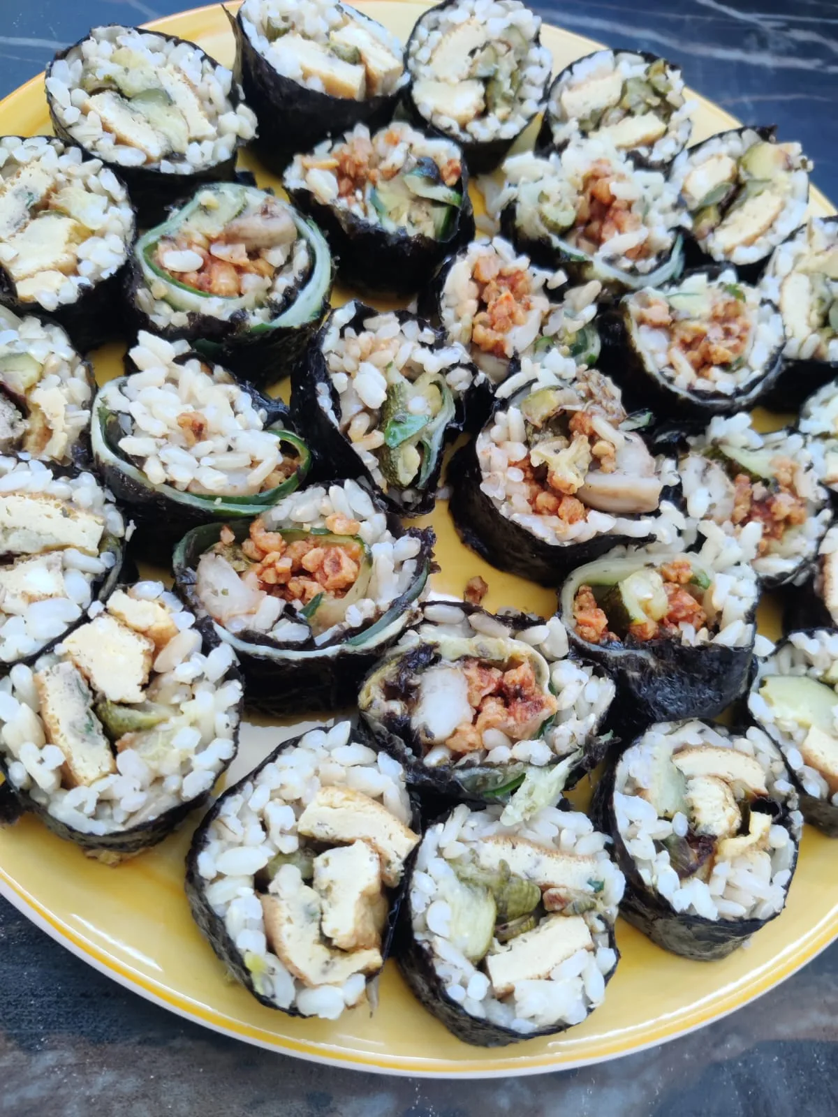 Vi piace il sushi? a me un sacco, ma è innegabile il suo costo, ed anche il fatto che quando andiamo al ristorante non stiamo consumando solo riso e pesce ma anche salse, fritto, e tanto ancora. Ecco una ricetta semplicissima per realizzarlo in versione vegetariana.