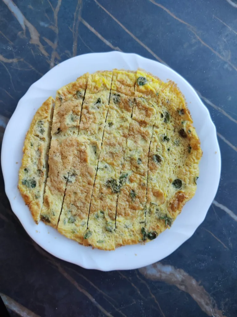 3. Per la parte proteica prepara una semplice frittatina con le uova e delle erbe, e poi tagliala a striscioline.