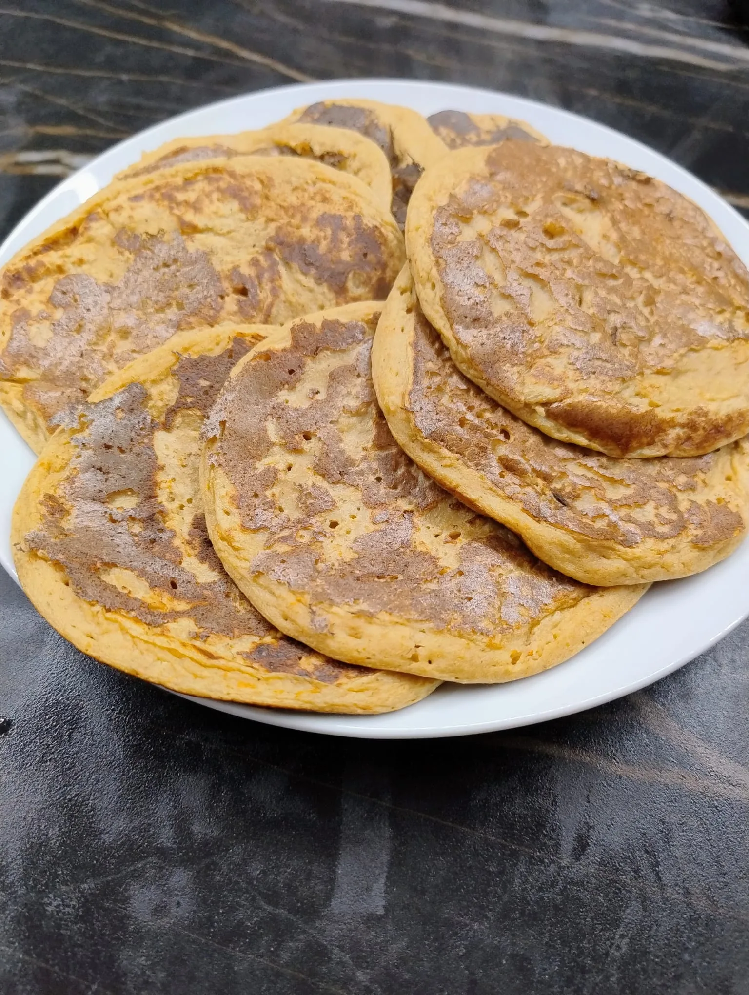 - Disponi l’impasto in padella e cuoci prima da un lato e poi dall’altro, fino a doratura. Non sono molto dolci, quindi se vuoi decora con frutta o sciroppo d’acero!