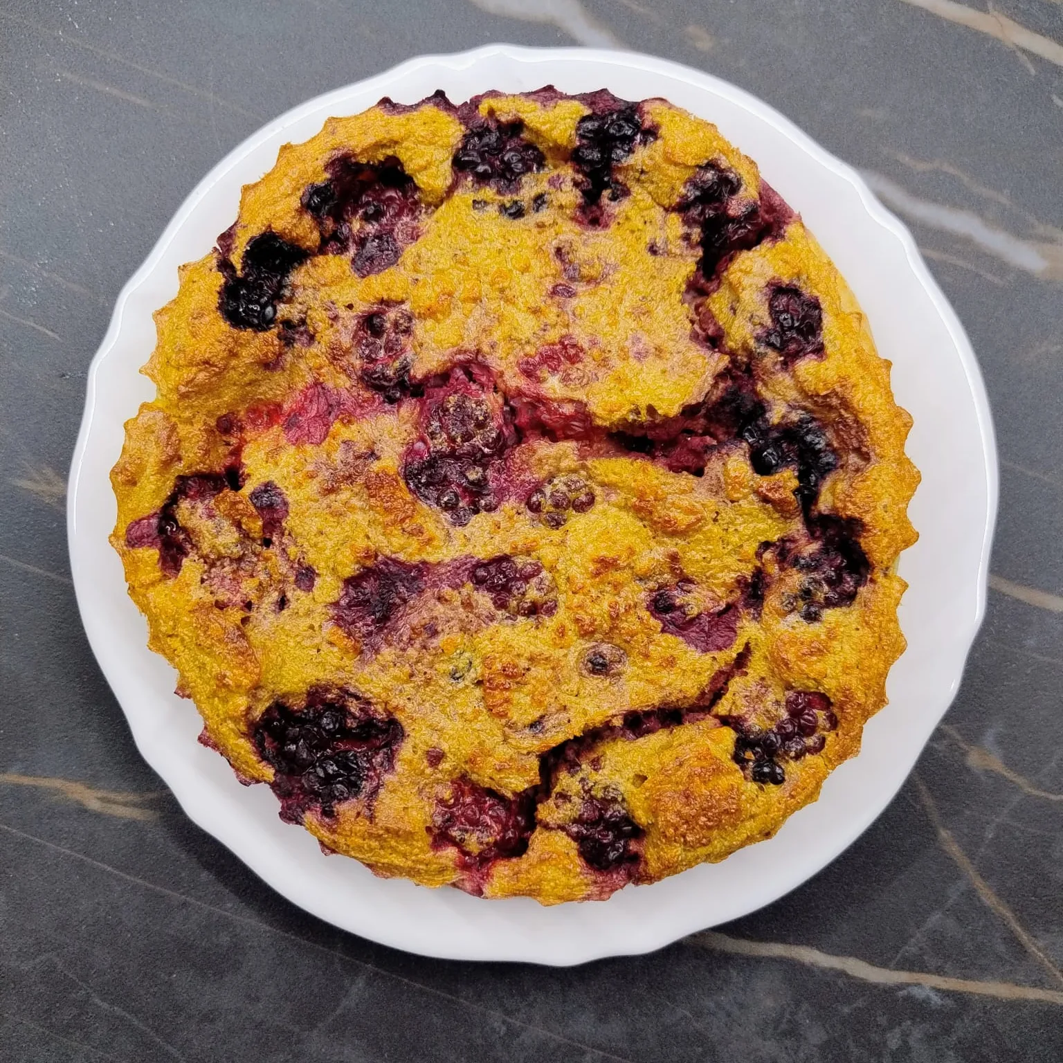 - Disponi in uno stampo da 12cm circa tutti i frutti di bosco, anche congelati. L’importante è che siano ben dolci e maturi. In alternativa, se hai della frutta non molto matura, puoi anche utilizzare un pò di miele per addolcire la pastella.