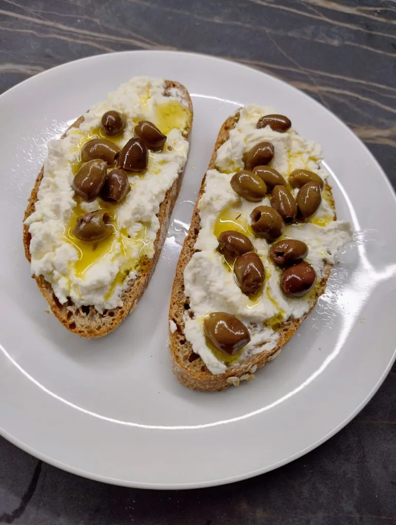- Metti il pane nel tostapane per renderlo croccante e completa con ricotta, e le tue olive.
